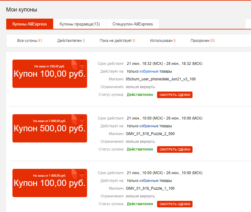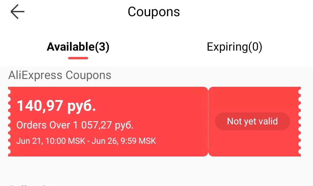 Что значит "Specific Product Level 49-2"? Вот дал продаван мне купон, дата: 6/1/2021-7/1/2021 - я так понял это до с 1 июня до 1 июля. А применить его нигде не могу, и в списке купонов его тоже не вижу (там есть два других купона от того продавана, но они в рублях, а этот в долларах, и только на заказы от двух тыщ и т.п.). ЯННП.