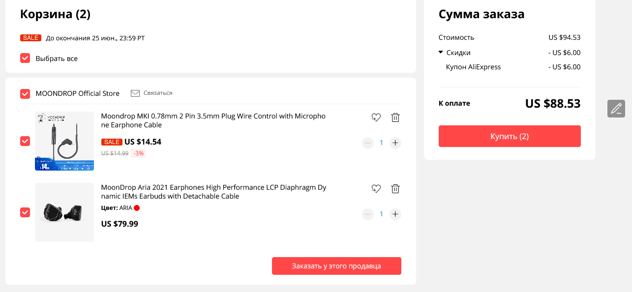 > А как ты узнал, что по центру, а не последний, лол? Они же одинаковые. Не досмотрел до конца, сразу на втором полез проверять курс > Алсо, нахуя он мне такой купон дал? Он же на заказ от трёх тыщ! Почему этого не было написано в окошке чата? Было написано, 49-2. Два доллара скидки от сорока девяти долларов покупки. > Я у него купон просил как компенсацию за дефект на товаре, собирался заказывать у него ещё и хотел скидку на следующий заказ (вместо возврата части денег с прошлого заказа). Возможно, что выдача купона вообще не относится к твоей просьбе. Просто распродажа наступила, и продаваны спамят всех клиентов пуконами типа 200-5. > Купонов просто со скидкой без всяких условий у продаванов не бывает что ли? Бывает, они сами могут выбирать стоимости, хоть 100-99. Только в отличие от купонов Али, разницу в стоимости товара и того, сколько заплатил покупатель, им никто не компенсирует.