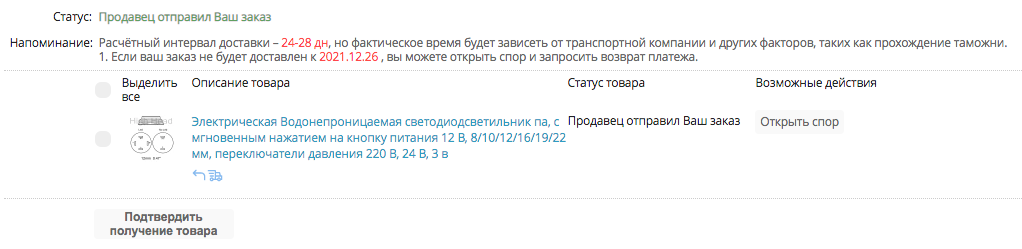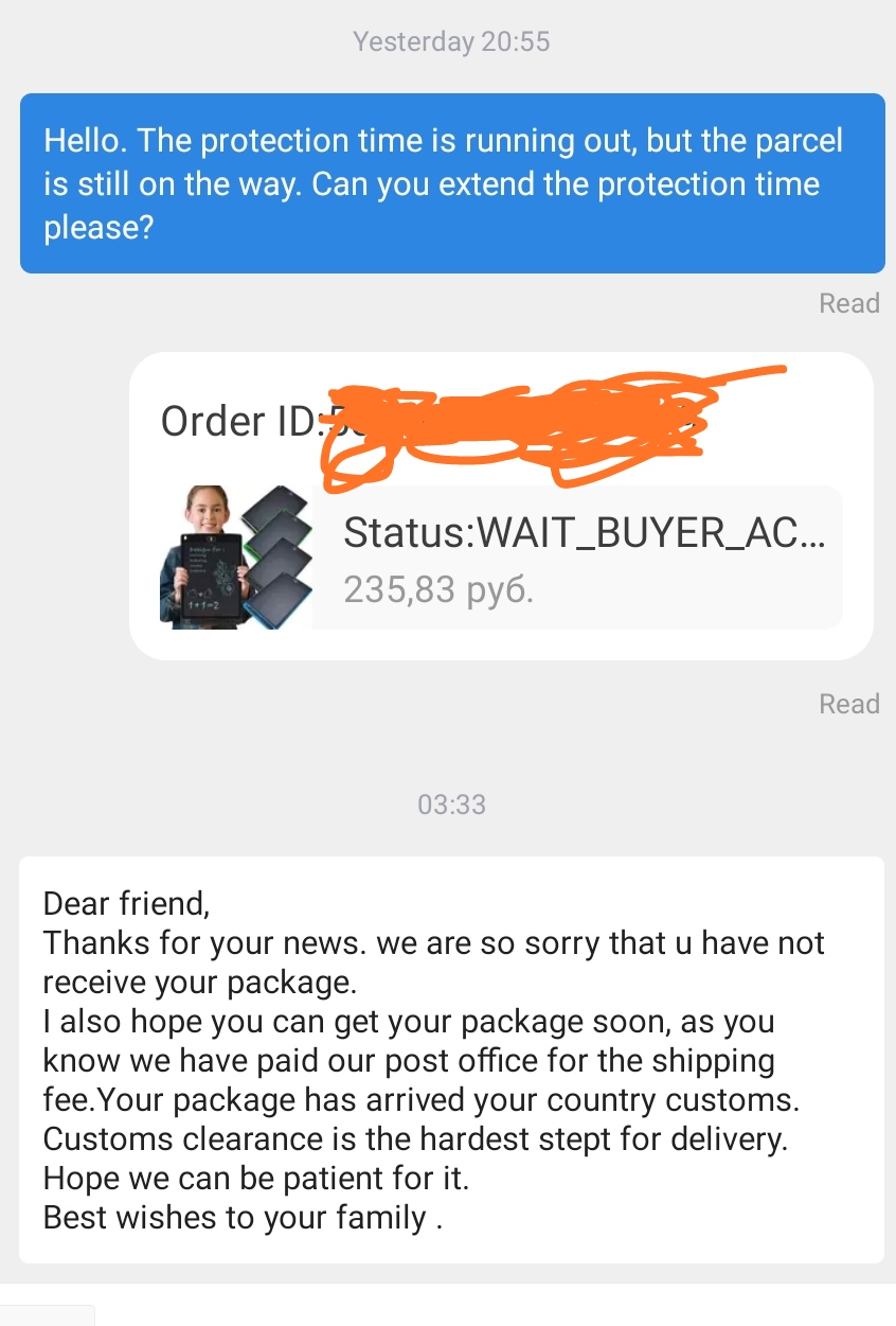 >>115729 >Просить у китайца скан инвойса, или как эта поебень называется, писать заявление на розыск в ПР. Зачем? Это не твоя проблема. >Дожидаться окончания срока доставки, открывать спор на фулл рефунд Да. Можешь открывать за пару дней до окончания срока. Но с очень большим шансом али просто накинет еще месяц на buyer protection. Потому что даже если у них написано full refund если товар не приедет в срок, это пиздеж. Али в этом случае тупо продлевает срок. При этом есть шанс, что продавец сам этот срок продлит, даже без твоего участия, но если они этого не сделают - то заказ может автоматически закрыться по истечению срока, так что лучше диспут открыть. Вот такой вот buyer protection, который на самом деле seller protection.