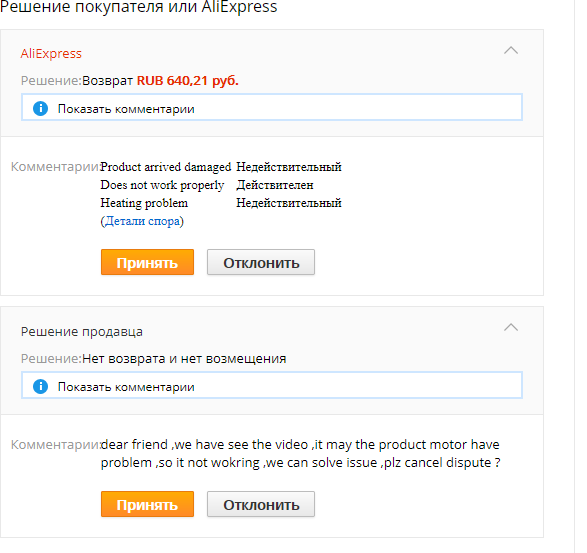 >>115717 >Нет кнопочки, чтобы сразу призвать представителя али? Да, отклони решение продавца, если есть кнопка. У меня почти год споров не было, х.з., как там щас.