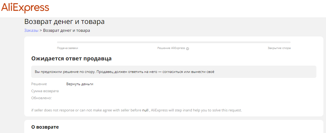 НИКОГДА не соглашайтесь на возврат денег на PayPal или другие платежные системы! Это обман! Китаец отменит платёж, как только вы закроете спор. Слушать рассказы про то, что вам отправят новый товар тоже не имеет смысла. Все операции с деньгами должны происходить через Али!