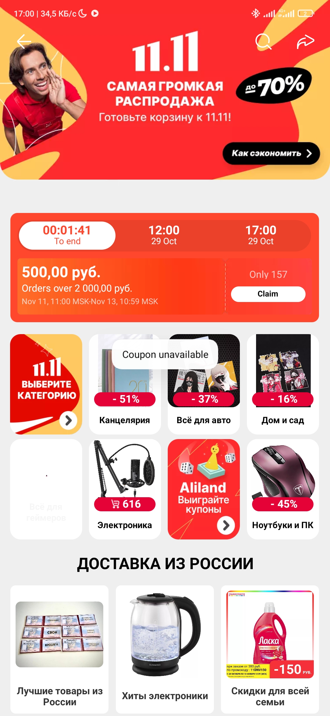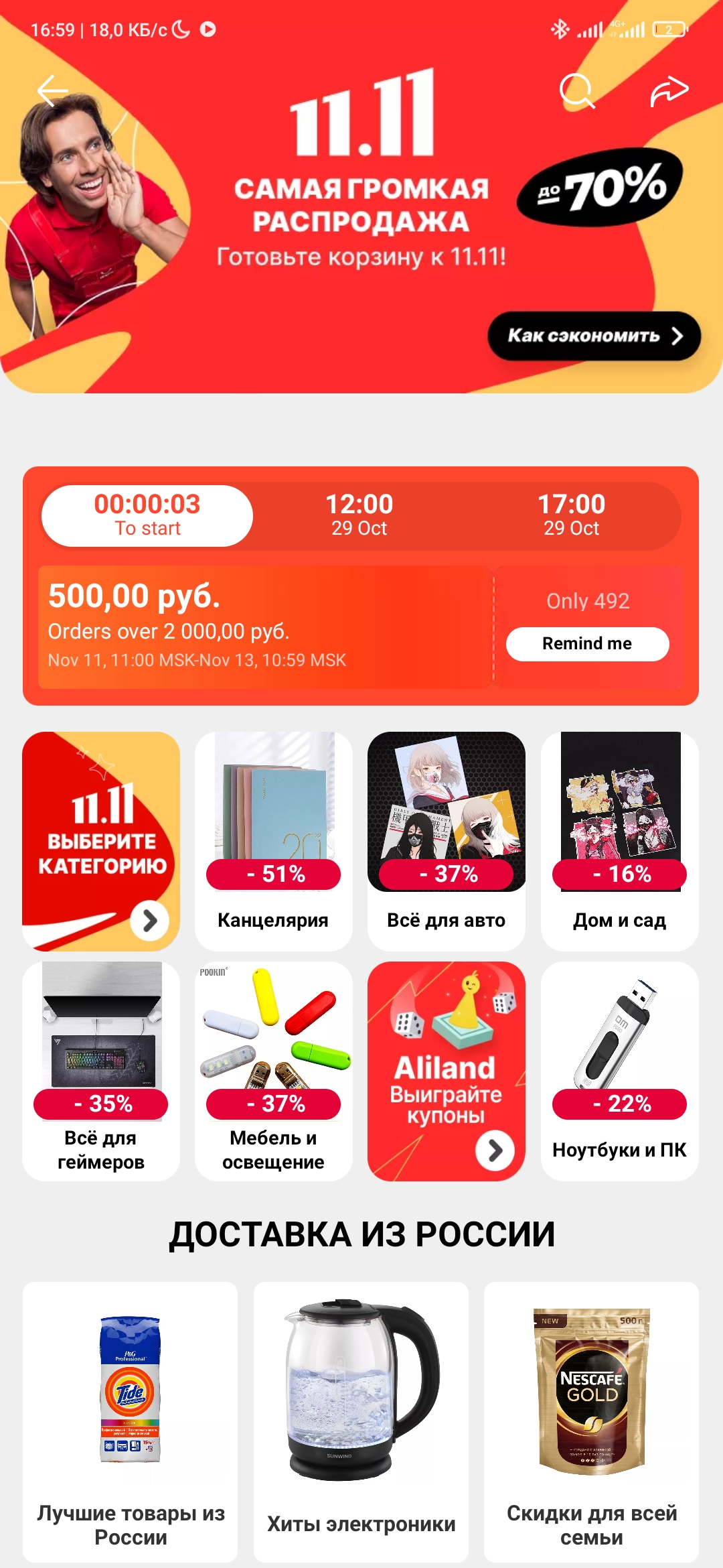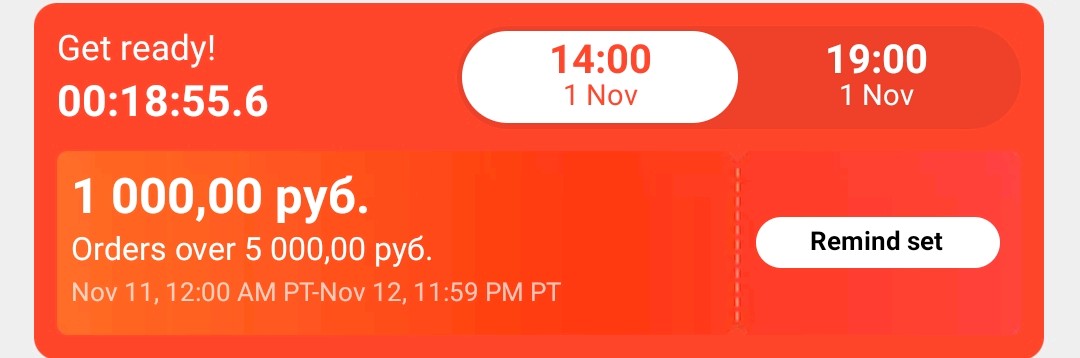 Следующий раунд раздачи купонов от Али должен быть в 17 по МСК и будет разыгрываться купон на скидку 500 руб. от 2000. Если, конечно, али никуда ниче не сдвинет.