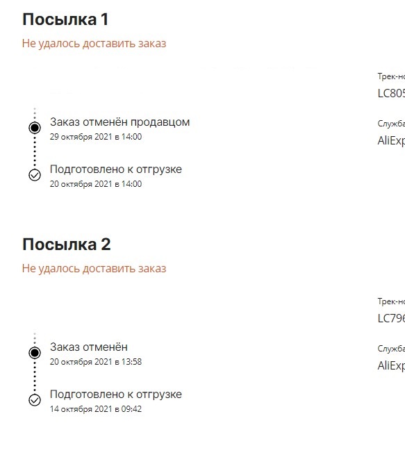 >>116141 Защита меньше чем через неделю истекает. Трек вида RLHxxxxx (доставка cainiao). Просто сам факт того, что статус "не доставлено" мне поставили 1 ноября, а курьер по прежнему со мной не связался (хоть он и не пытался), наталкивает на мысль, что посылку и в последующие дни такими темпами не доставят