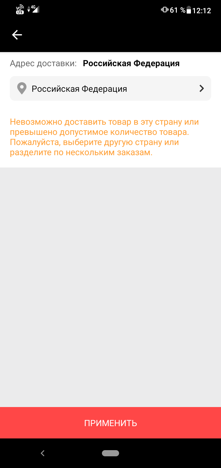 >>116044 Выглядит вот так. На экране товара при этом в разделе "Доставка" висит бесконечная загрузка. Если на нее нажать - получаем пикрелейтед. Сам товар https://a.aliexpress.com/_ASpwnN Причем очень много товаров (это просто пример) с таким, и все с тмолла.