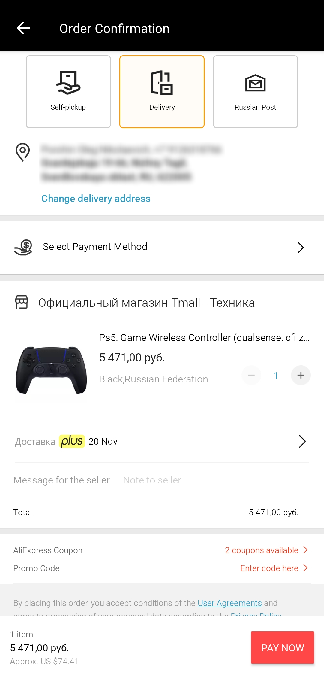 Нашел в интернетах, что хитрожопые китайцы так гоев на доставку наебывают: ставят доставку по России и самовывоз из пятерки, а по факту отправляют из Китая обычным безтреком. Заебись выбрал магазин с десятками тысяч заказов и рейтингом 99.9%...