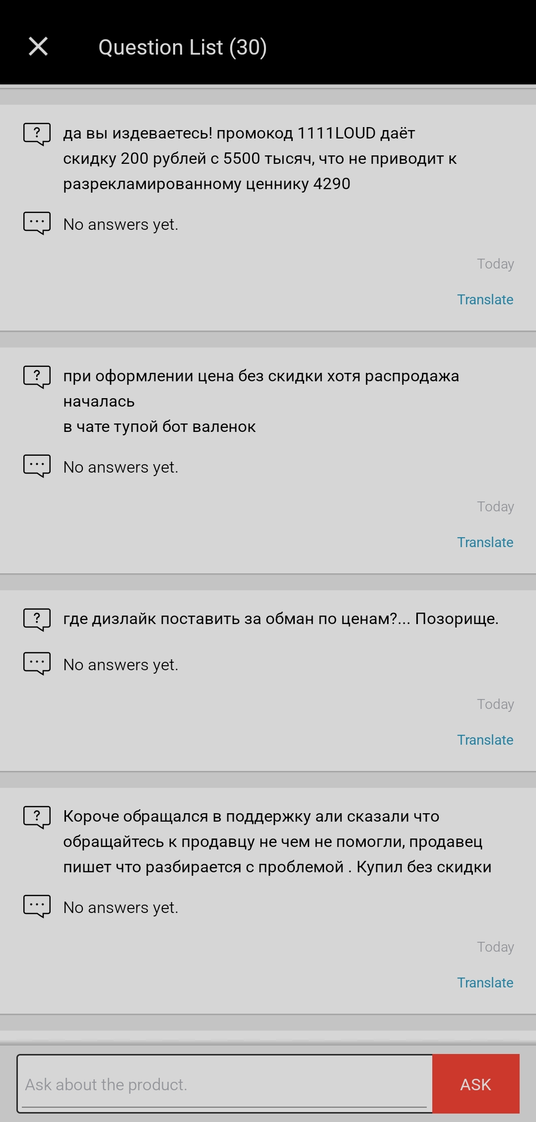 >>117011 Это не продавцы на алике плохие и не сам алик плохой это ты лошарик не знающий цен и не желающий проверять прошлую стоимость товара у этого продавца или где либо ещё. Надо было через поддержку попробовать отменить или спамить продавану в личку.