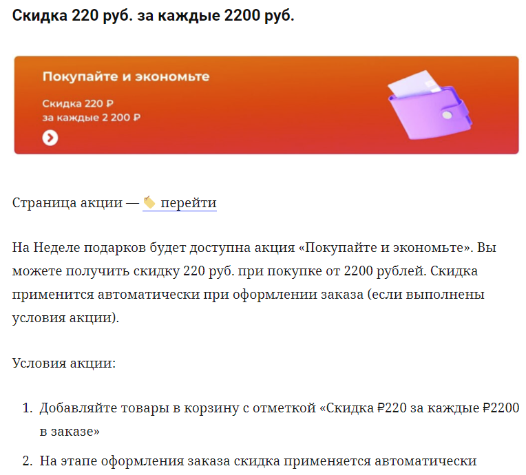 >>116805 С баллами раньше норм было там затариваться ну и цены ниже были. Акции, баллы халявные по праздникам, те-же промики с пачек чая Нури, лолохуенная тема была купил пачку чая за 30р, а там промик на 200р действующий от любой суммы Сейчас там только или по промикам что то покупать или ждать скидки на определённые товары. А так даже на wb выгоднее.