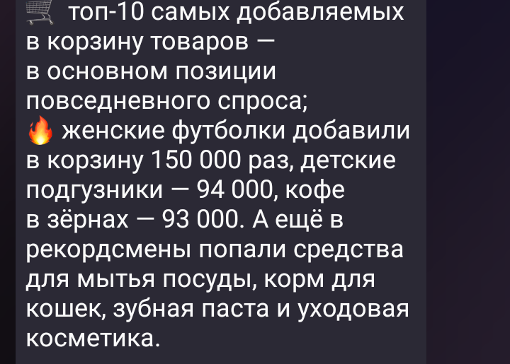 >>116827 На пункт выдачи им не лень ходить? Часто наблюдаю очереди из таких мамаш у пунктов, реже чем тачку озоновскую у подъездов. Зайди в любой паблик вк или в чатик в телеге посвящённый покупкам там только мамашки и сидят. Бдят, где что можно сегодня выгодно купить и где какая акция. Они то как раз всем этим озонам кассу и делают со своей бытовухой, мелочевкой и одеждой, а не полтора анона со своими видимокарточками раз в пять лет и сяоми которые даже не знают куда промики вводить и задают тупые вопросы по типу ЕСТЬ ЛИ КТО НА ОЗОНЕ, хотя там уже ваши прабабки на протяжении нескольких лет закупаются черносливом и мазью от геморроя.