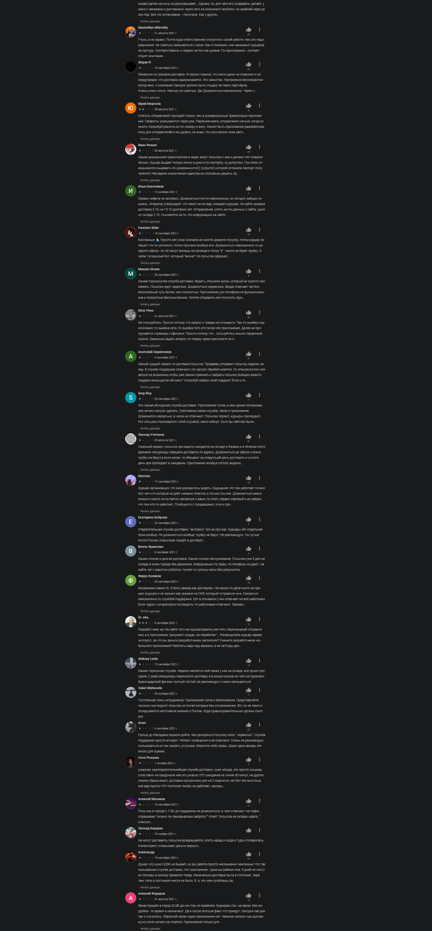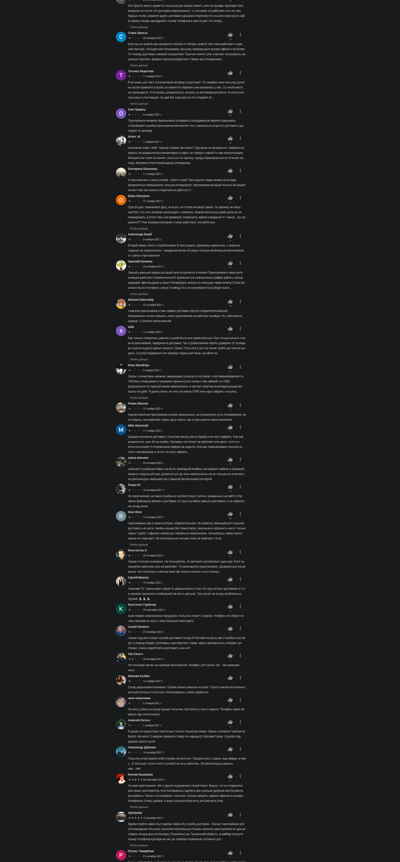 >>116882 > У всех служб доставки большинство отзывов отрицательные, никто намеренно не будет тратить свое время и писать положительные отзывы.