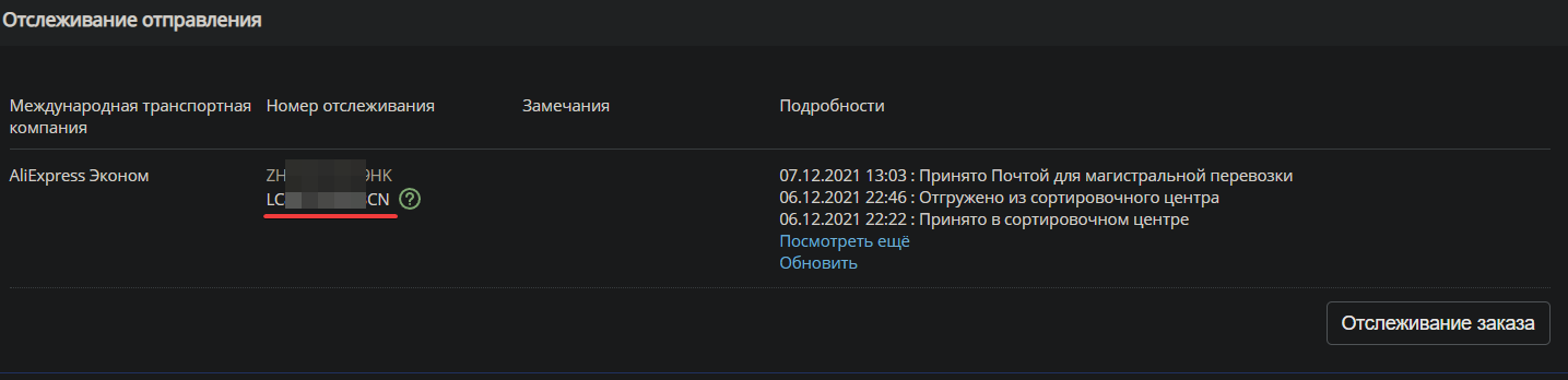 Прошла ещё одна неделя, трек не обновляется.Я ему говорю - номер правильный? отвечает мол да, ждите терпеливо. Попросил обновить трек - отменил старый заказ, поставил новый, опять висит "ожидается отправка продавцом".