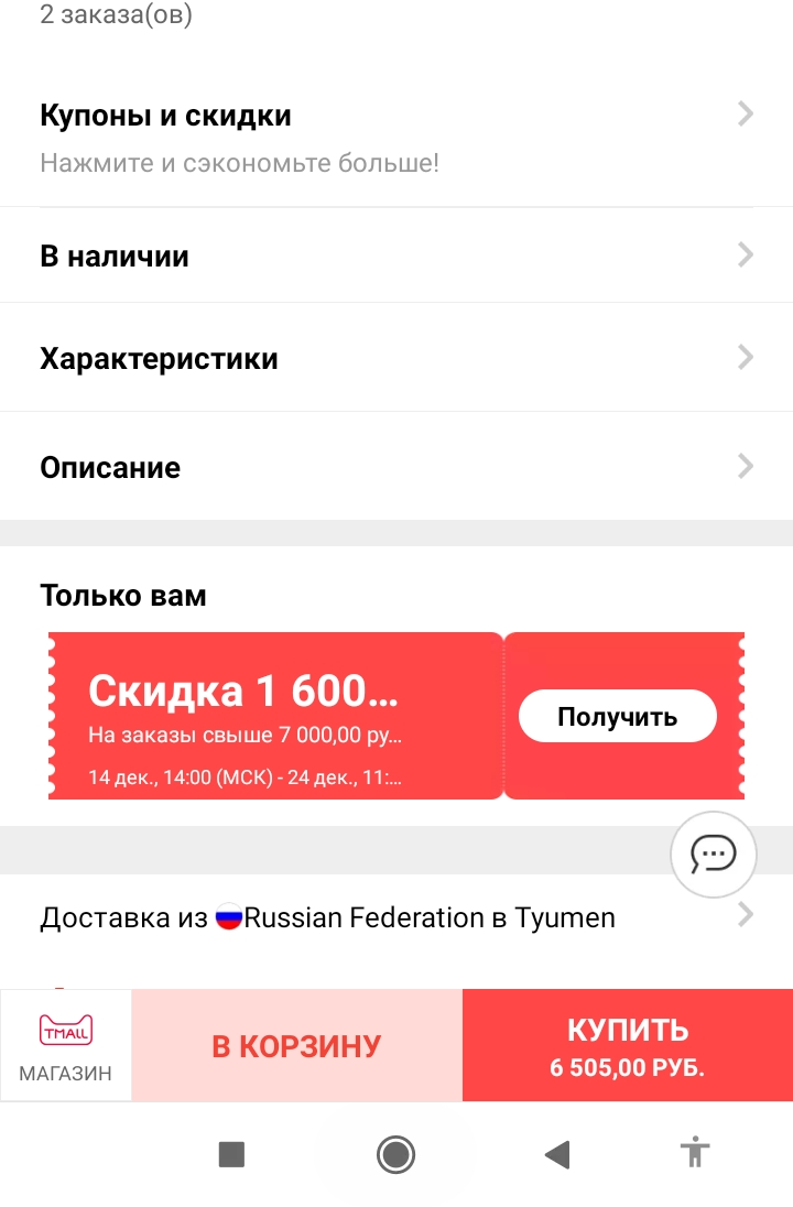 Внимательно следите за ценами в магазине Tmall. Цены там могут быть примерно такими же, как в других магазинах в России! Внимание - цены в этом магазине выставляются в рублях, поэтому при покупке в этом магазине целесообразно менять валюту на али на рубли. У этого магазина так же свои купоны в рублях, они несовместимы с обычными. Товары поставляются курьером со складов в России от российского юрлица, имеют гарантию в России и всё такое.