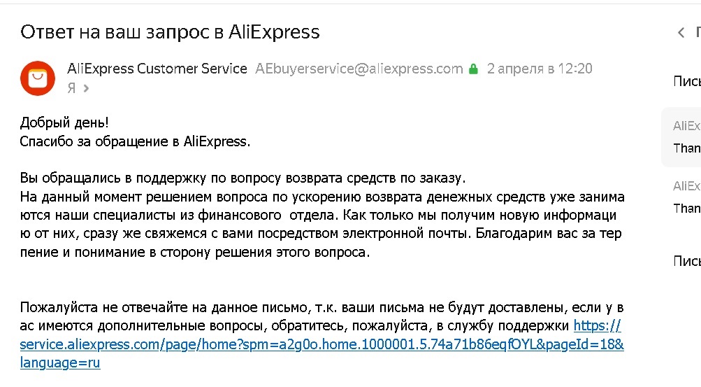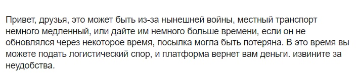 >>119316 Проблемы с банками, пропавшими под ограничения, как понимаю. Думаю, в скором времени китайцы предложат таким случаям альтернативу, типа, чтобы получить деньги, введите номер карты, на которую можно перевести. Или даже какую коллабарацию с системой быстрых платежей, кто знает. Я позавчера открыл диспут по безтреку от января, мне уже на следующий день пришли деньги (скрин одного товара из трех в заказе) Банк Санкт-Петербург, если что.