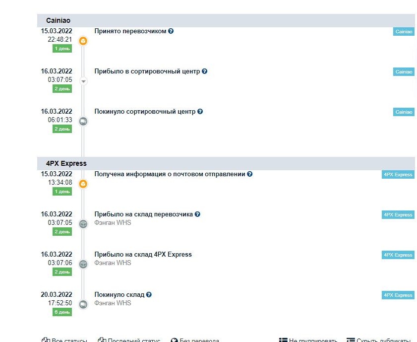 >>118637 > Уже недели 2 с копейками как висит в статусе Received by line-haul >>118546 (OP) > Если у вас очень долгая доставка заказа, то ждите. > Можно и не ждать, но эффективнее будет - ждать. Если ждать устанете - не ждите, но потом посмотрите движение трека и подождите.