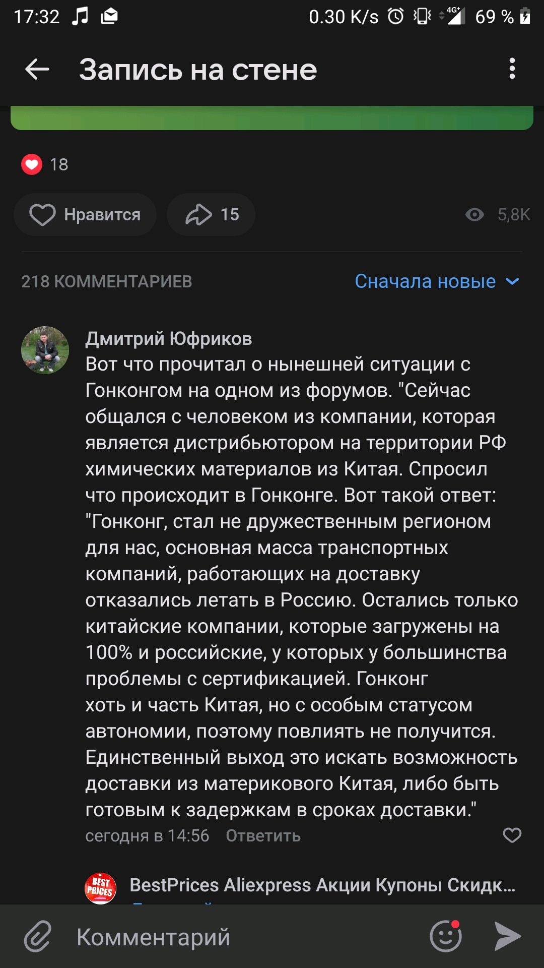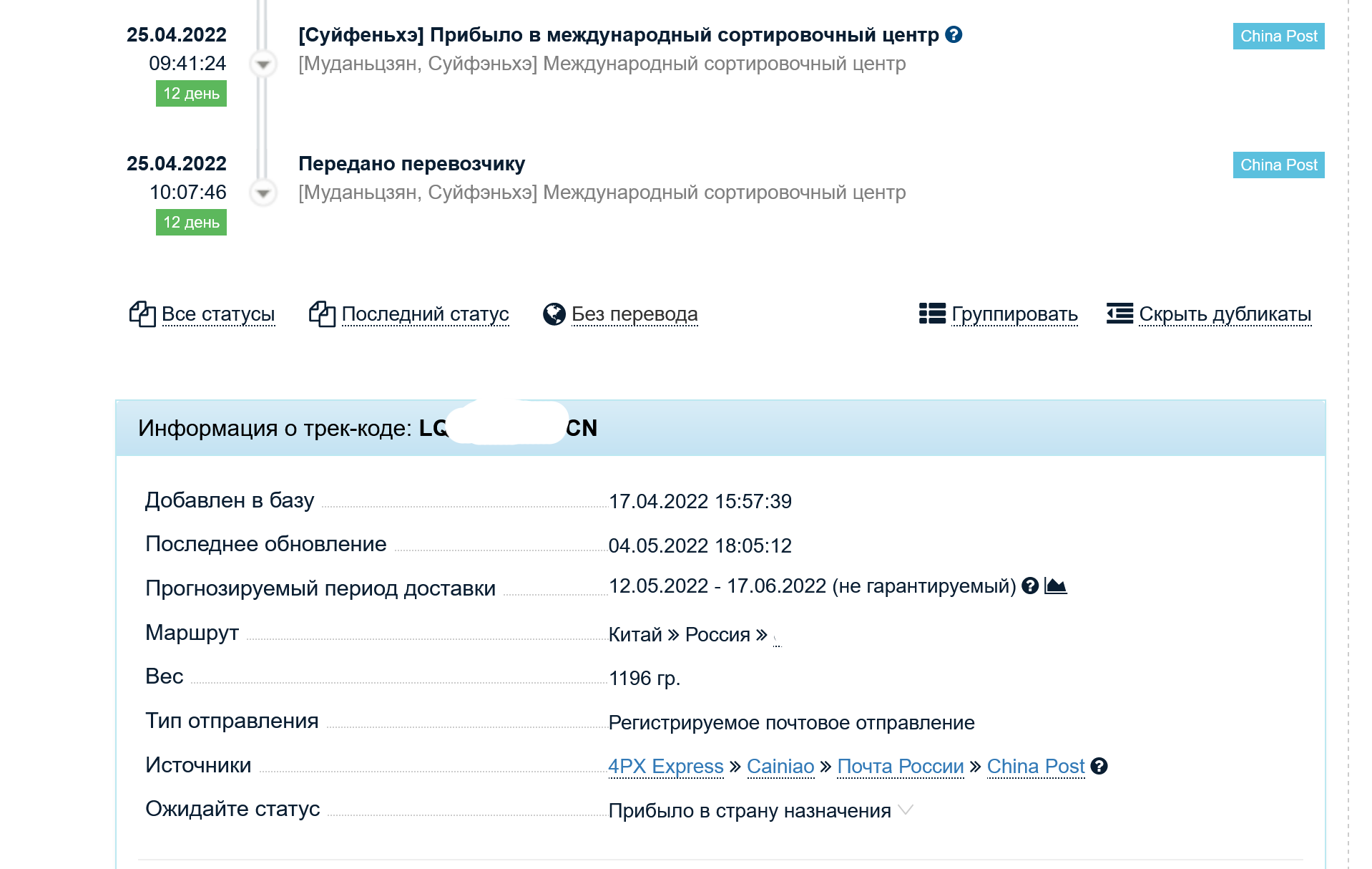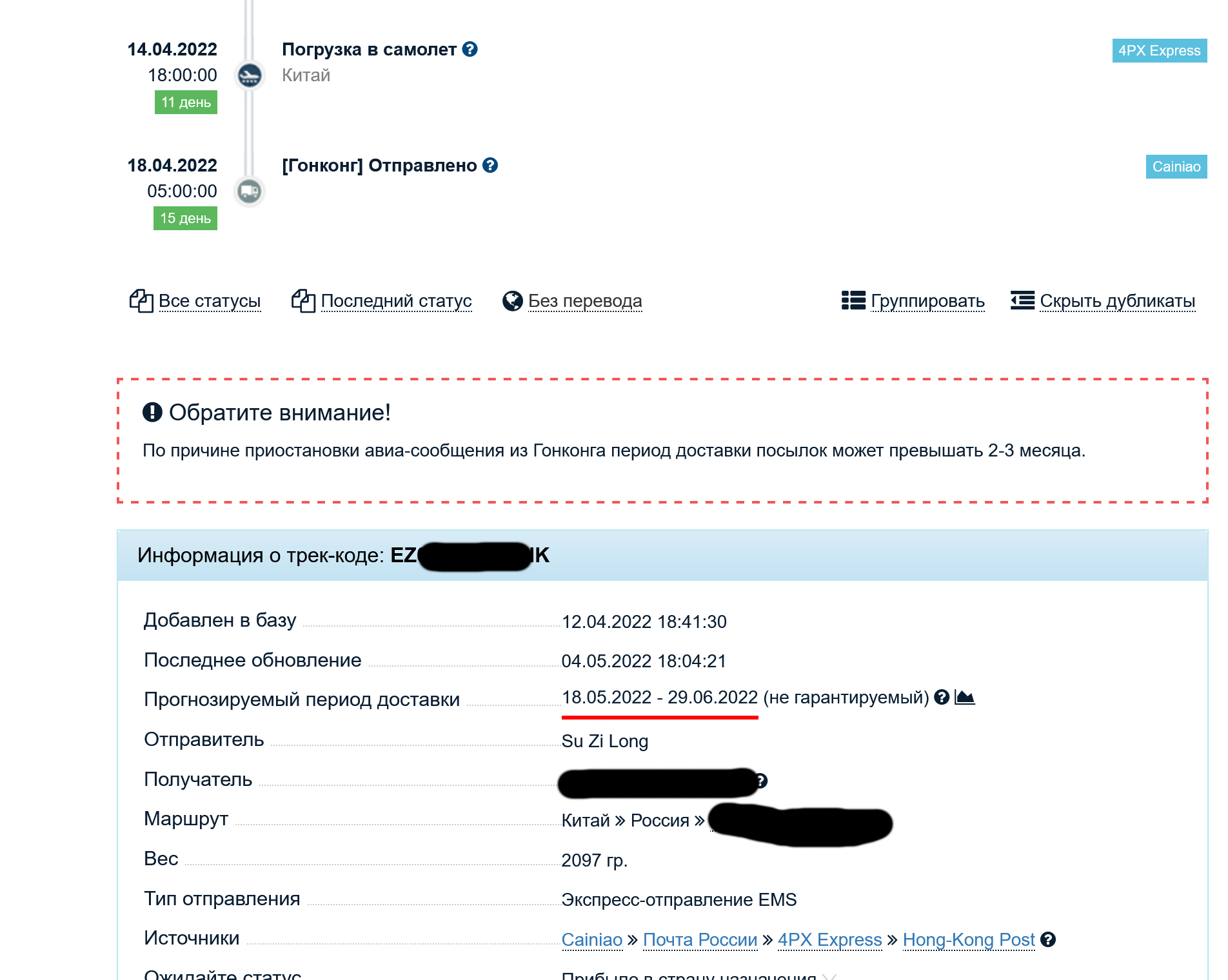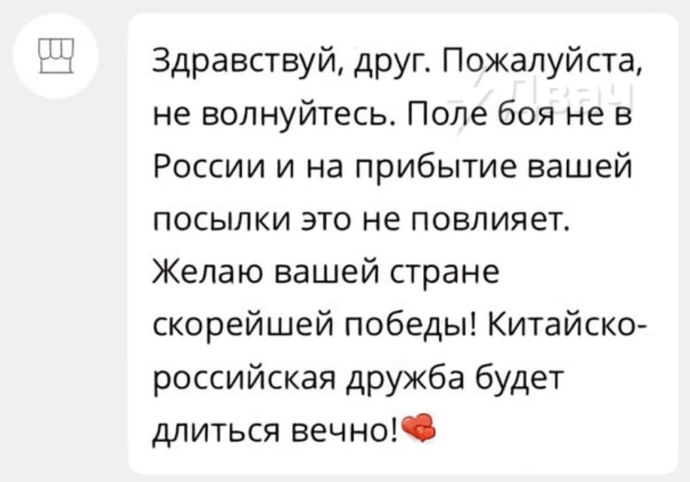 >>118972 >Пишут что с 9 апреля возобновили Это наёб был. Какая-то манька спутала желаемое с действительным. Возобновилась работа почтовых служб внутри самого гонконга. Авиапосылки из китая в РФ как лежали, так и лежат.