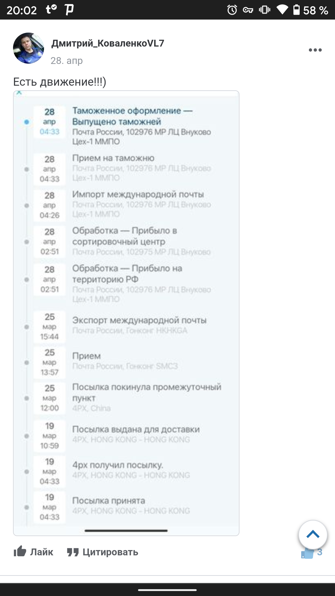 Я так понимаю Китайцы хуем провели по моей посылке? Обычно постаматовые мне максимум за 2 неделю доходят, а тут вообще 0 движения. Бывали у вас такие случаи, когда вот так, а потом зашевелилось?
