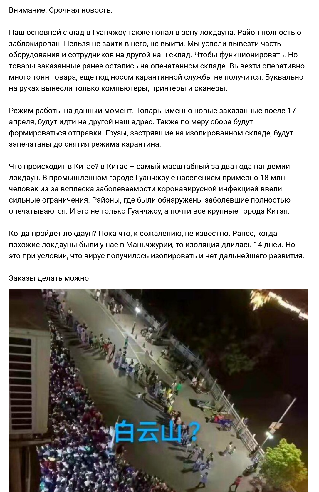 >>119106 В Китае беспрецедентный локдаун какого не было еще никогда. Литературно сотни миллионов человек сидят на карантине. В портах скопились десятки тысяч контейнеровозов. Твоя посылка лежит на складе, не ссы. К осени доедет мб.