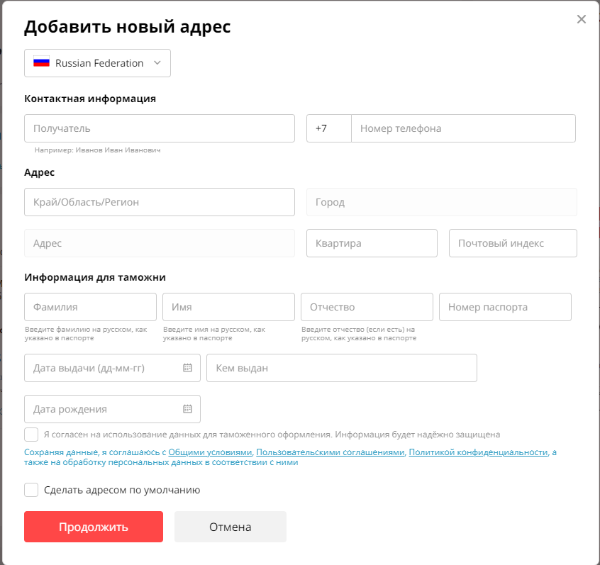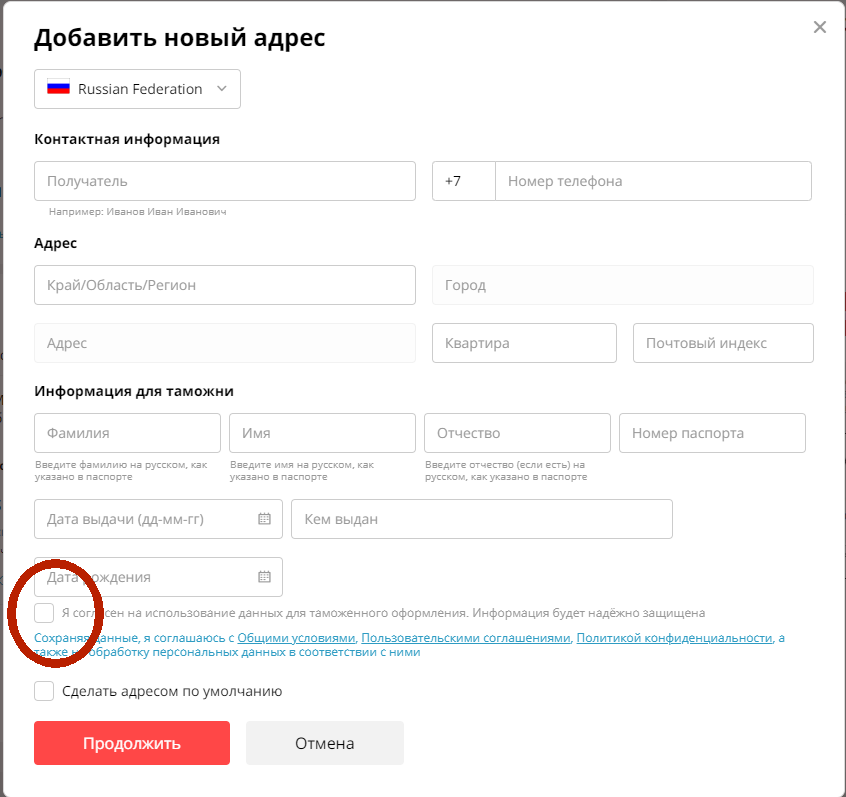 >>119287 >внизу просит паспортные указать. Это не обязательно. Поставь галочку напротив "принесу паспортные данные по первому свистку" и адрес введётся без заполнения паспортных данных.