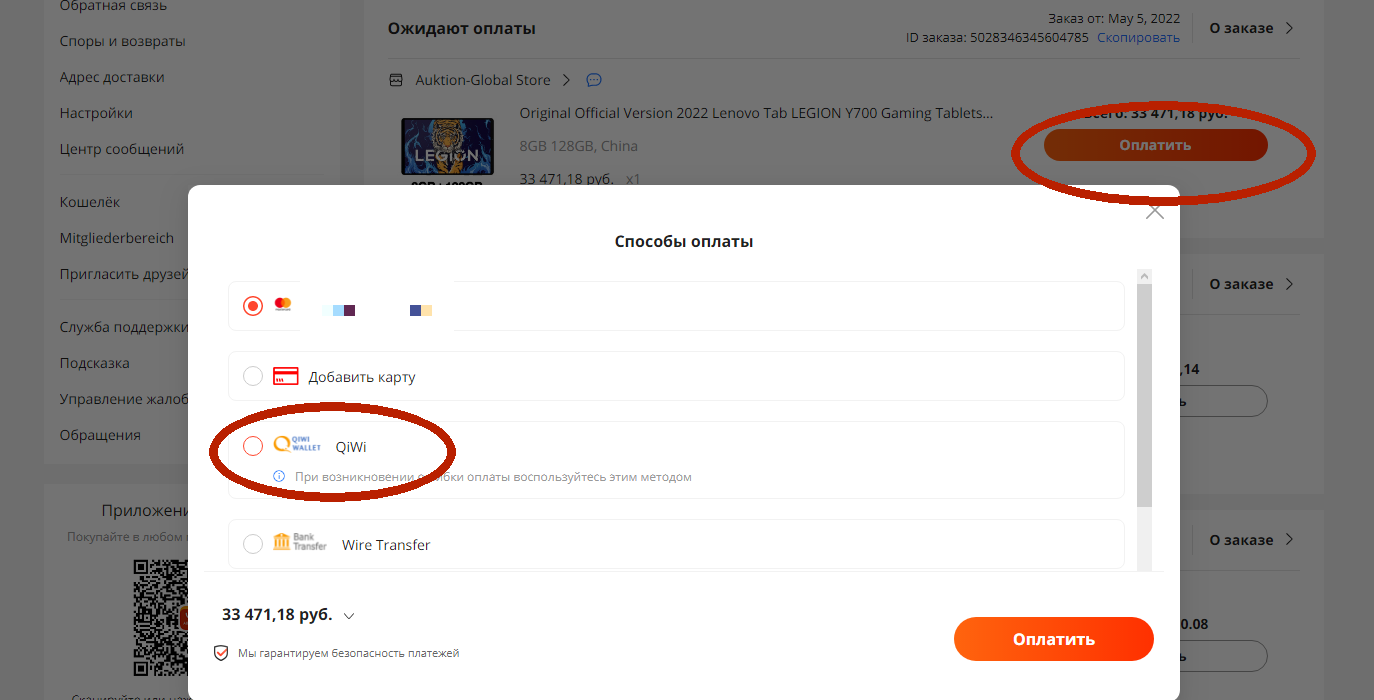 В общем, для интересующихся покупкой через Кивю алгоритм такой: - В мобильном приложении делаем все как обычно, нажимаем "оплатить". Приложуха может сдохнуть / вылететь, это норм. - Идем на сайт Киви в раздел "платежи", там появится счет от Али, оплачиваем его - На Али в списке заказов наш заказ становится оплаченным
