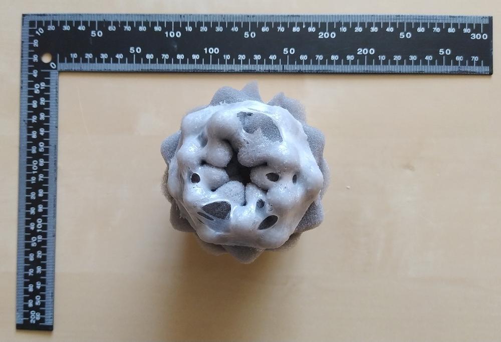 Короче, это по сути пластиковая банка, в которую запихали свернутый поролон по размеру, и внутрь тупо налили на четверть объёма банки самого дешманского TPE, даже не пропитав им стенки как следует. Получилось такое мягкое "дно" (мыльное на ощупь, на него моментально налипает грязь) и тонкое покрытие поролона изнутри. Вобщем, на фото это хорошо видно.