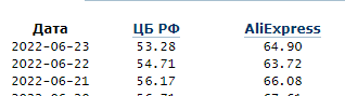 >>120572 Можешь ещё на мосбирже курс доллара мониторить, в 10 открывается. Плюс 5 рублей обычно на али в последним дни, как раз 55 был когда там яма была 50,5 р