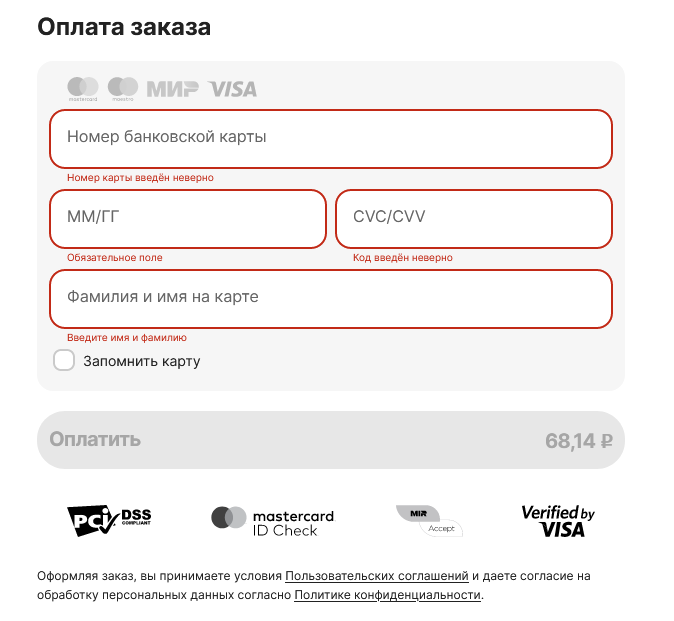 что за хуйня? почему я не могу оплатить ссаные наушники ха 200 рублей? ввожу данные карты(виза), карта становится способом оплаты, нажимаю оплатить и случается перманентный пикрил