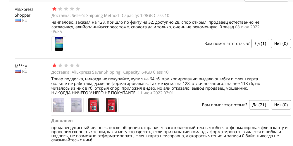 Это вообще нормально что на али всякие ублюдские петухи продают подделки им ничего не делают? Например это чмо продает фейковые сдкарты с фейковым объемом. И у него куча положительных отзывов, но когда читаешь отрицательные, то пиздец просто. Как так?