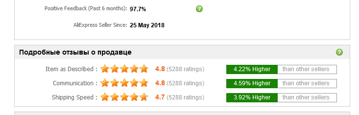 >>120930 >92.8% положительных отзывов >4.6 Ниже среднего >И у него куча положительных отзывов, Я продавцов у которых рейтинг ниже 96% и в детальном рейтинге не горят зелёным цыфири "выше среднего", даже не рассматриваю.