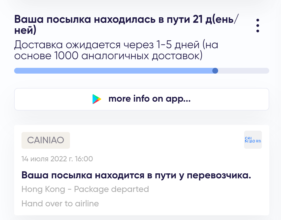 забей свой трек номер в трекере из ссылок в оп посте и посмотри более детально
