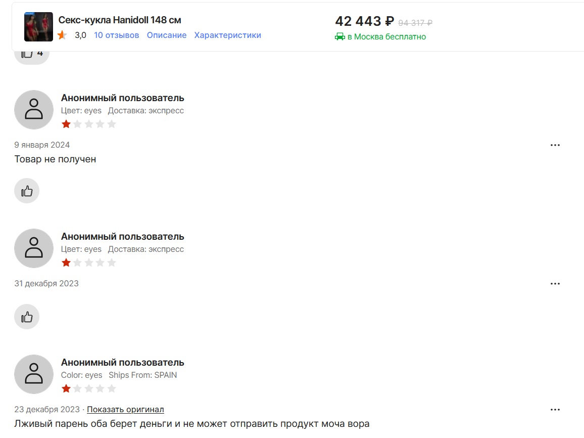 Чот вы быстро перекатываете в последнее время и не постят особенно ничего. Заказал куклу у наших перекупов https://sexy-doll.ru/seks-kukly-v-nalichii/ Фишка в том, что у них довольно таки много кукол в наличие(больше у наших не нашёл) и доставка в ДС происходит в тот же день. Есть нормальные складские фото. Обещают сделать на все позиции. Переплата судя по всему ~10% в случае ценника 60-70к и больше в случае ценника 80-110к. Вообще не понятно почему цены разные это по сути один и тот же aibei dolls как я понимаю. Или messe. Что не понравилось. 1) По дефолту доставка только до подъезда лол. Но за 500р подняли на этаж. 2) Не сняли наклеку с палевной надписью big breast Но если в чате попросить - думаю сделают всё как надо. Интерактив с продавцом нормальный.