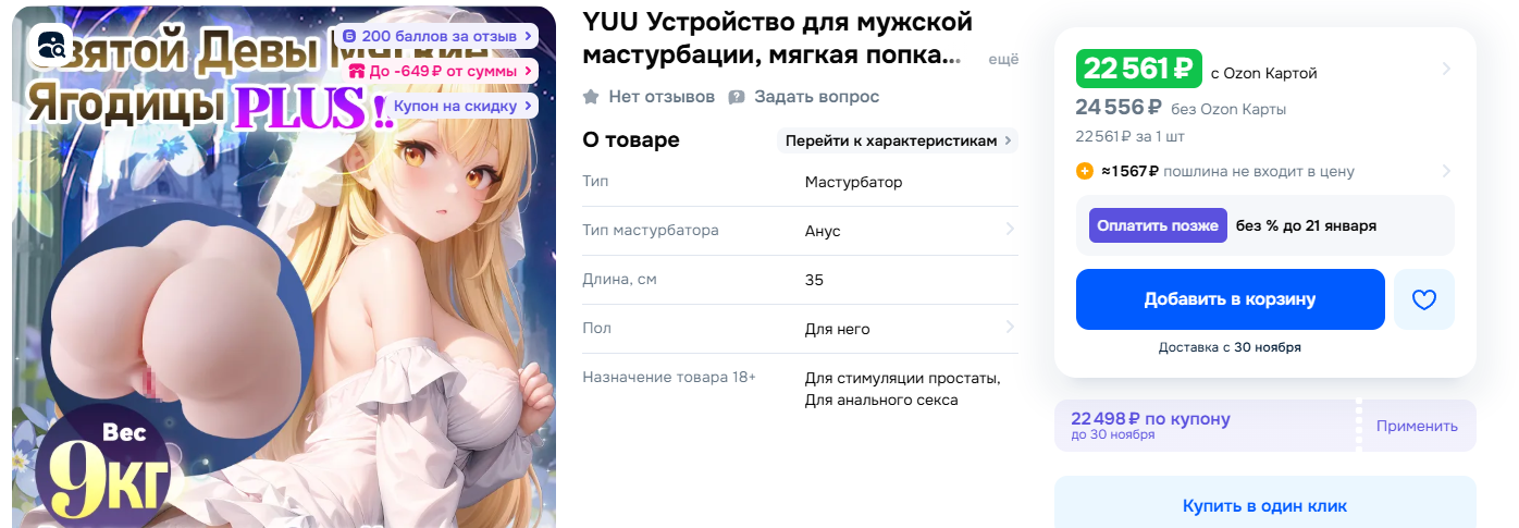 Ну что анончики мои дорогие, заебал я продавца жопки от yuu 9кг, он скинул до 14к на озоне. Я просил в пределах 13-14к, он мне кстати скинул сообщение, что подешевле стало. Единственное, что этому магазину меньше месяца и отзывов нет, но он якобы официальный. Вот: https://www.ozon.ru/product/yuu-ustroystvo-dlya-muzhskoy-masturbatsii-myagkaya-popka-uvelichena-na-9-kg-muzhskie-izdeliya-3017918914/?_bctx=CAQQ7YJK&hs=1 Что до меня, любезный анон скинул выше видео этой жопки от yuu 9 кн и ангельскую от gxp 6кг. По виду и текстуре мне больше понравилась ангельская. ( от yuu совсем уж желе). Ещё бы теперь найти, где купить ее