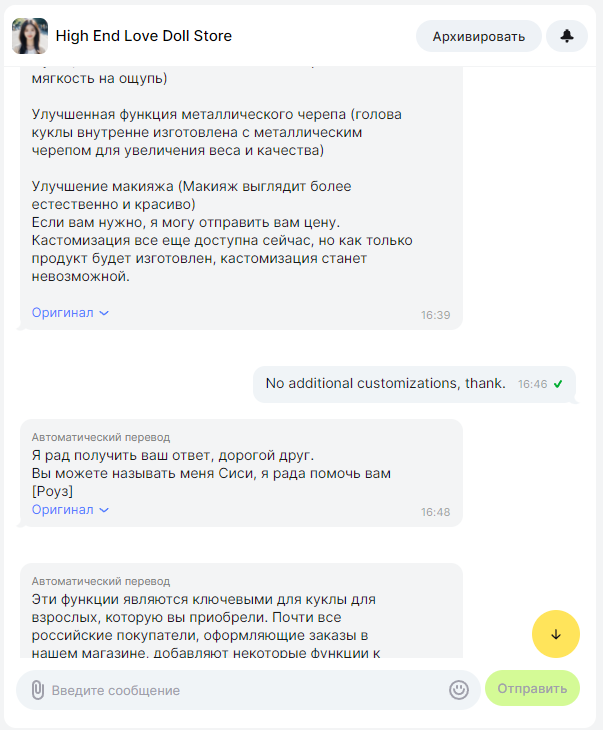 По итогу должно получится $1095 за силиконовую куклу с допами. Пока что выглядит как выгодная сделка. Хоть и сумма подобралась к максимальной которую я могу сейчас на куклу потратить.