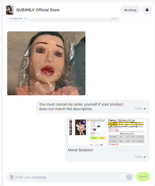 >>134893 Хз кто это заказывает. Анон в прошлом треде говорил, что это нормальная практика менять условия и цену в ходе разговора с продаваном с али, если речь о полноценной кукле. А там такое даже с торсами вытворяют, судя по комментам. Я бы сразу сказал скаммер иди нахуй. Нет фотографий в комментах - тоже нахуй. Вот с жопами как-то проще. Если я однажды закажу целую куклу, то только убедившись, что другим уже приходили и люди довольны остались. Кстати у куклы еще и пизду не поменяешь наверно никак, кроме моделей с вставной, но она там болтается и без задач. Таким образом то, что они фото не дают, ну это сразу нет.