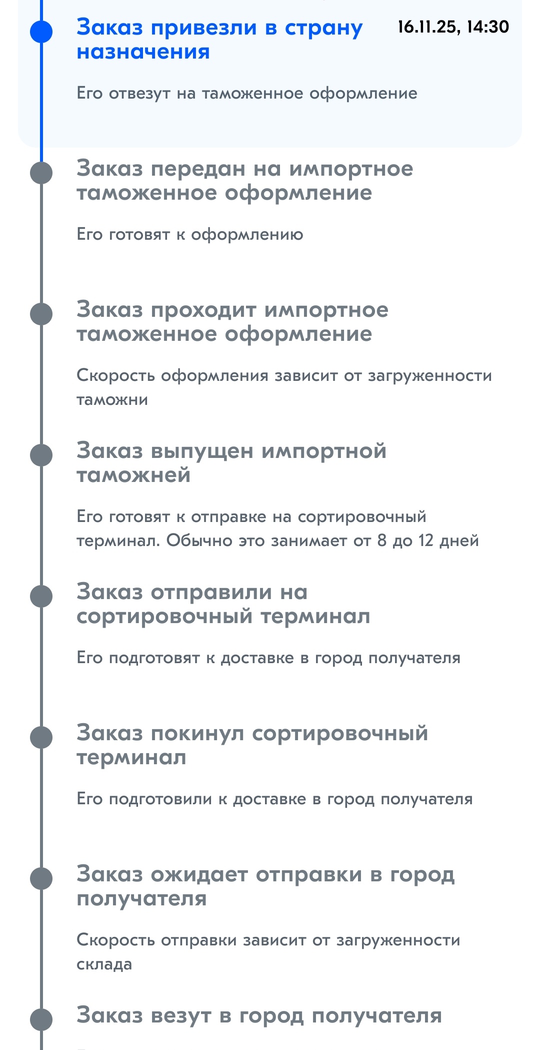 >>135580 Сейм щит, то на таможне тестировали, теперь сортируют всем складом, сомневаюсь что девятого как указанно приедет. Может это под новый год у них на складах жопа.