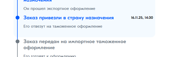 >>135522 >Моя всё ещё висит так я же и говорю что у меня озоновский трекер не обновился, а сторонний уже показал движение. Через другой трекер посмотри может тоже пошла дальше. У озона скорее всего раз в сутки только инфа обновляется.