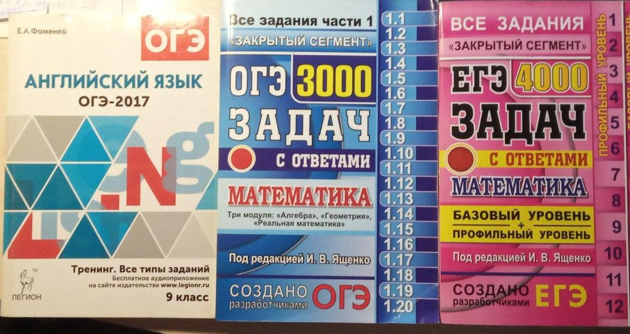 Если есть ОГЭшники или ЕГЭшники, то отпишите мне на почту, продаю очень дёшево старые пособия по ОГЭ + есть пару книг по ЕГЭ (на фото, к примеру, хороший сборник заданий по математике с базой и профилем). Задания не особо поменялись, так что думаю вам зайдет. Цена около 100+ рублей, зависимо от конкретной книги. Если берёте несколько, то сильно скину. [email protected]