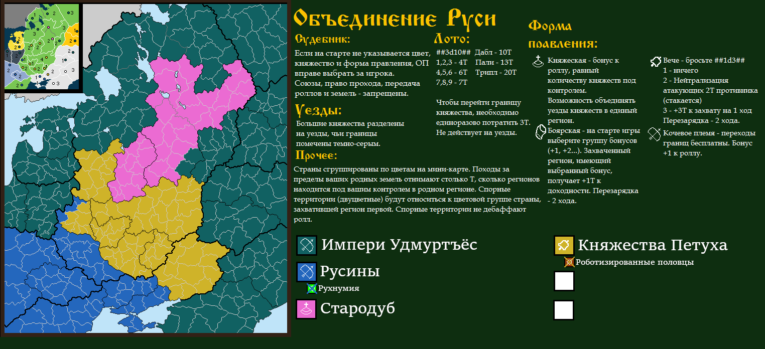Правила: 1. Это текстовая ролевая игра. Она происходит путём словесного взаимодействия игроков, описывающих действия своих персонажей, ГМ, описывающего реалии окружающего мира и реакции NPC.