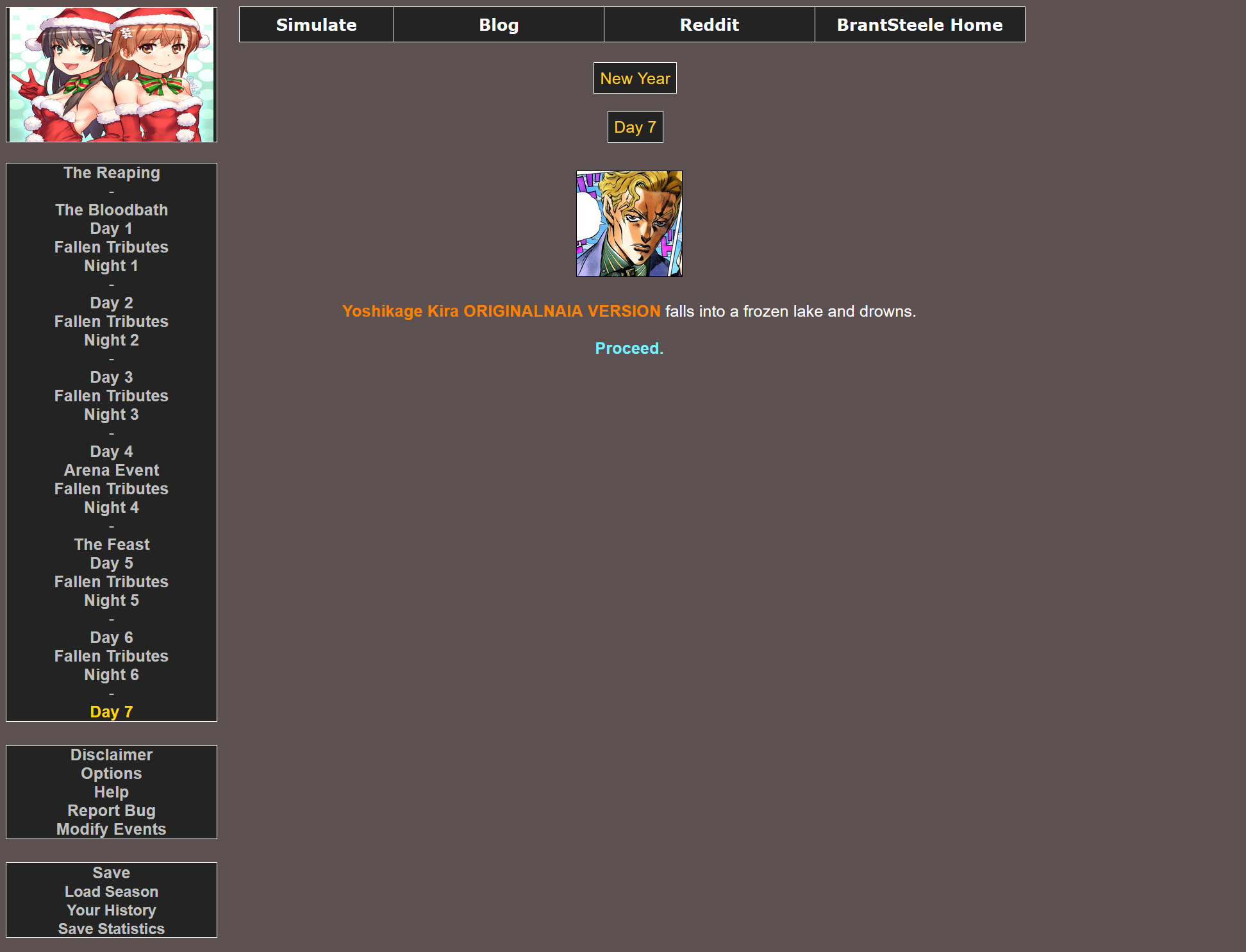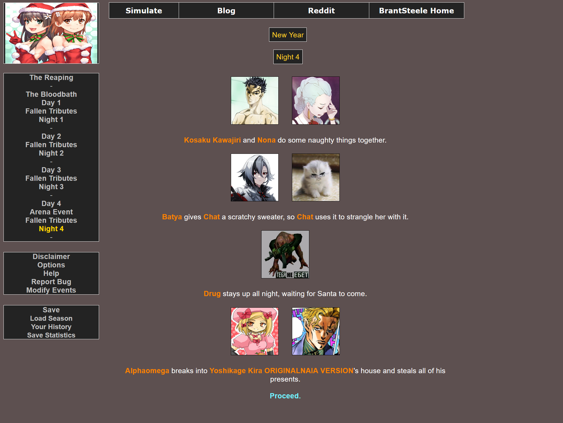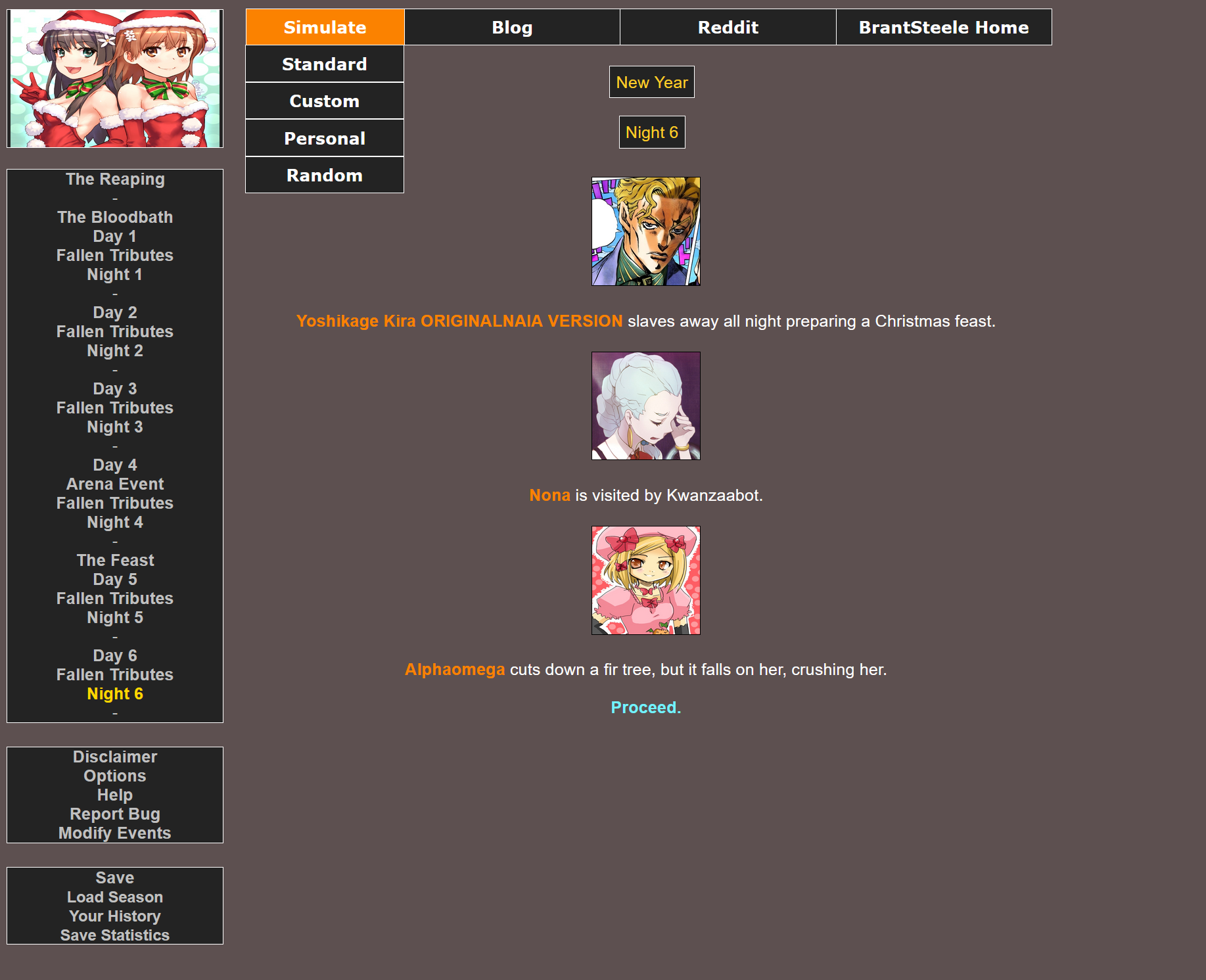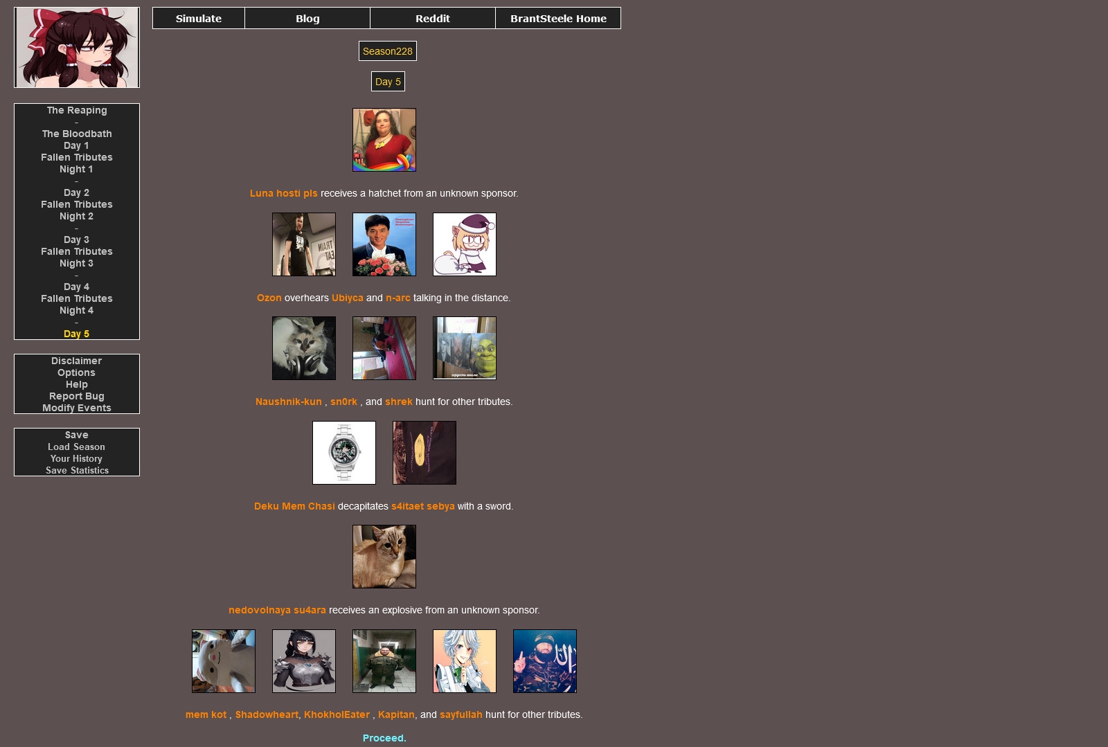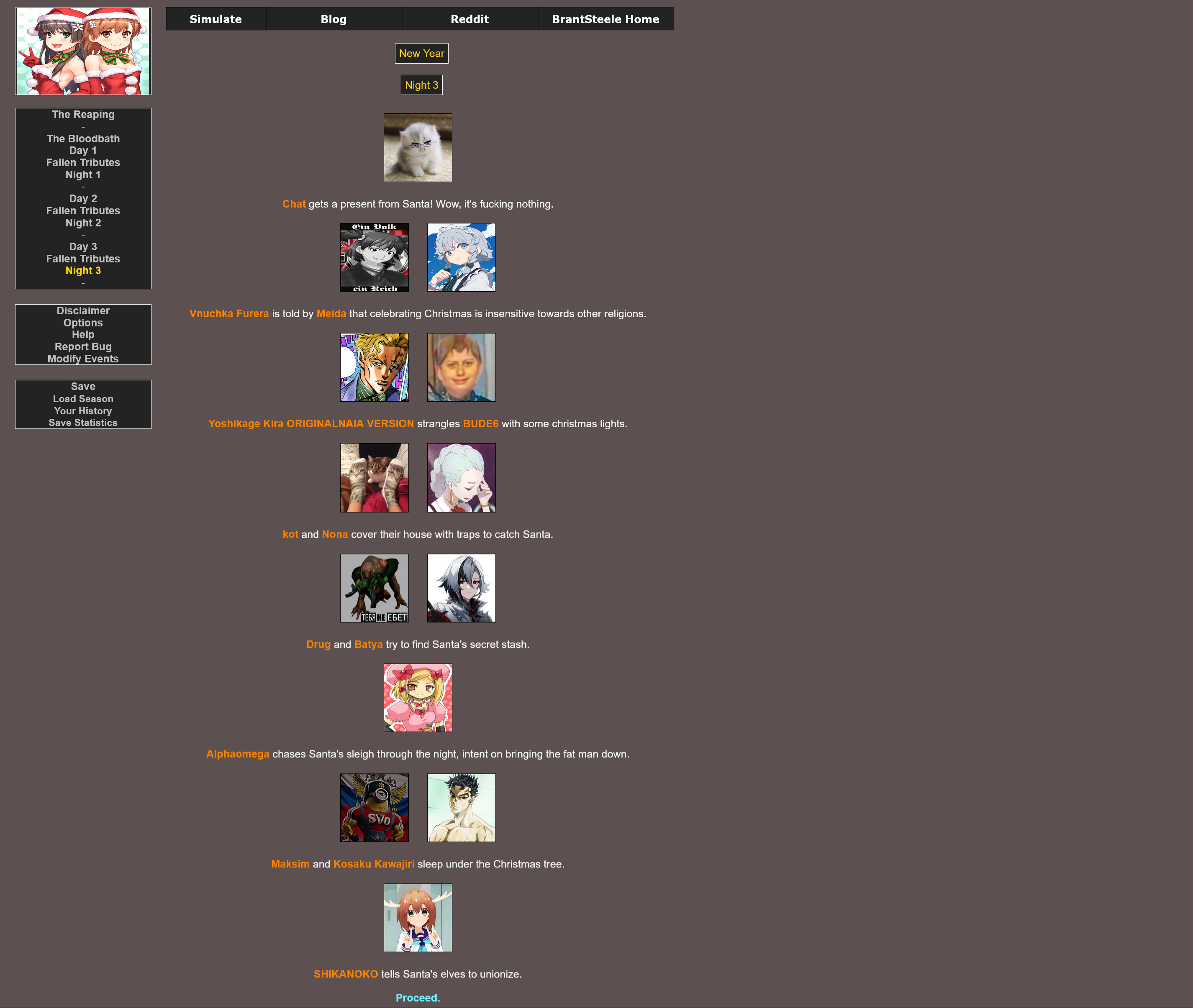 >>1536877 1. Ждёшь, когда хост даст команду на сбор персонажей. Например, как тут >>1536786 2. Вкидываешь в тред имя персонажа + его аватарку, как тут >>1536792 3. Запасаешься попкорном, ждёшь, когда наберётся 24 персонажа на игру в текущих полудохлых реалиях придётся ждать не один день. Затем наблюдаешь за тем, как твой персонаж пробивается к первенству в симуляции Голодных Игр. Ну или скорее получает перо в бочину на первый-второй день. 4. ??? 5. PROFIT!