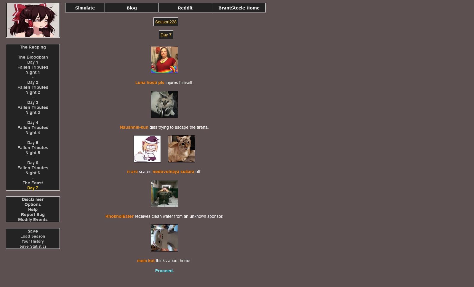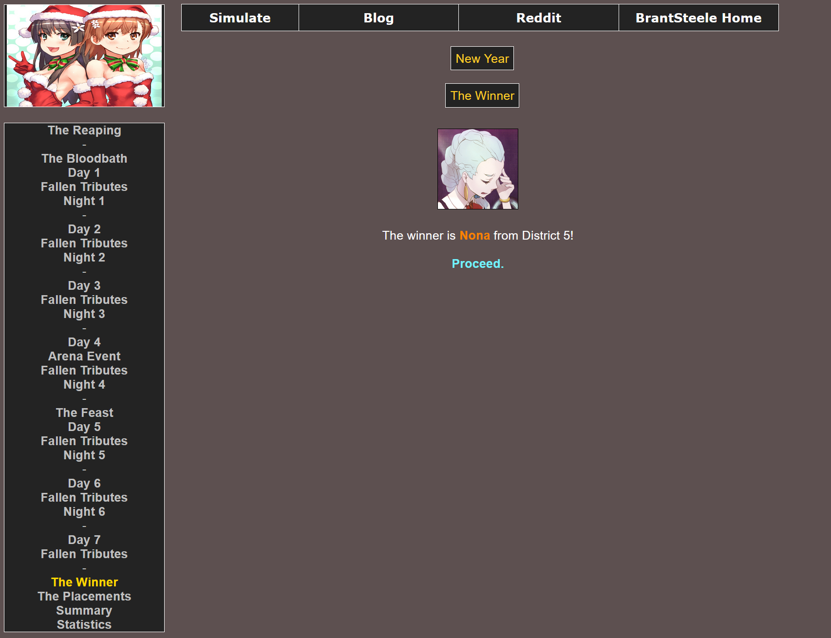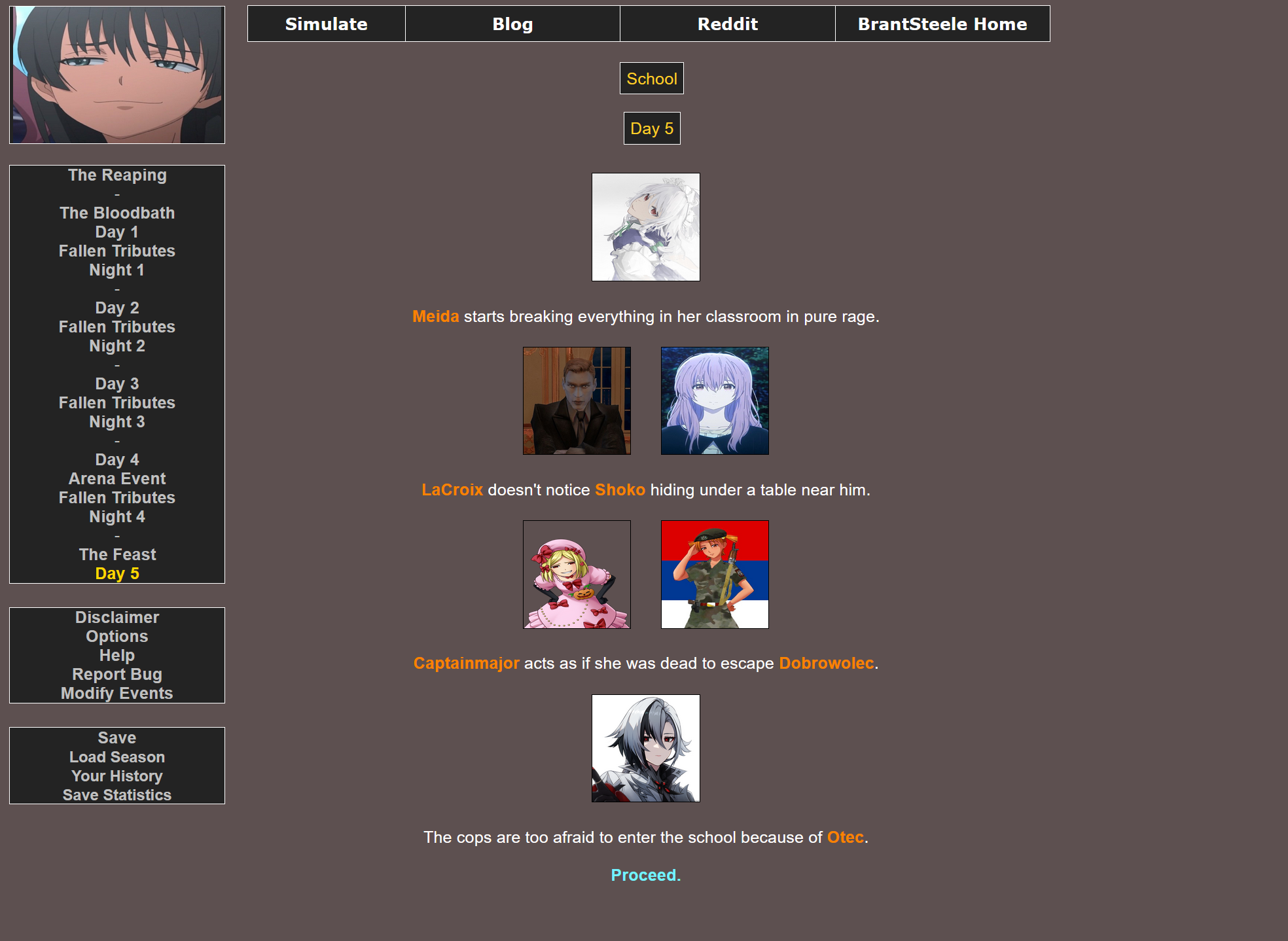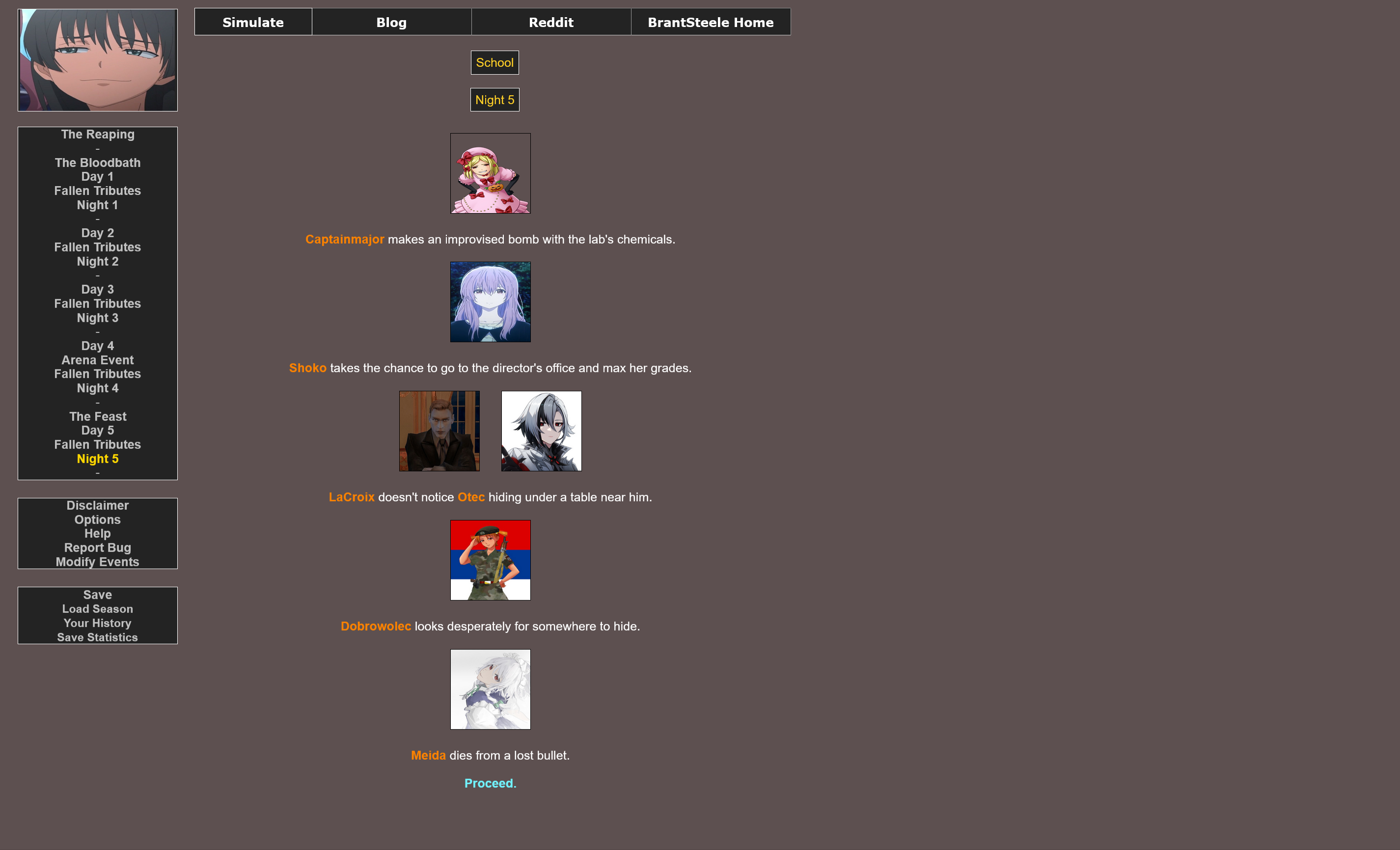 Мистическим образом(здесь явно задействовано могущественное таинство), горничная из особняка Тоно попадает в Голодные игры. Даже в такой ситуации, она остается оптимистичной, в её груди греется надежда вернуться обратно на службу, ведь кто еще будет заваривать чай госпоже Акихе?!