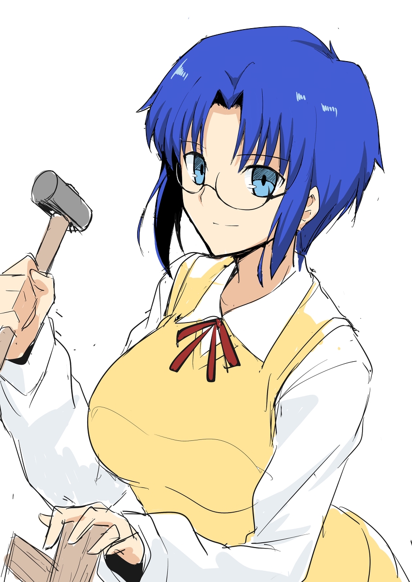 Тосака пытается сломать молоток об плиту. У магов свои причуды