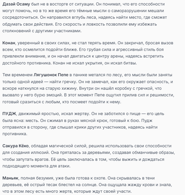 Ха-ха-ха! Приветствую всех любителей хаоса и разрушения! Я, Джокер, сегодня ваш главный комментатор этого веселого маскарада! Давайте посмотрим, что наши отчаянные участники приготовили для нас сегодня!