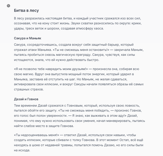 >>1536931 > Не, слушай, у меня получилось выдавить из него шутейки уровня начальной школы, надо будет ещё промпты поковырять. Это похвально, возможно, додрочишь его до шутеек уровня /brg. > В идеале было бы всё это автоматизировать, чтоб скриншот сам заливался в гопоту, копировался текст и делался пост на харкаче. Для начала бы найти, кто в это играть будет. Я вон в воскресенье команду кинул, до сих пор 4/24. А для игр в /b раз в сто лет хватит и руками протыкивать.