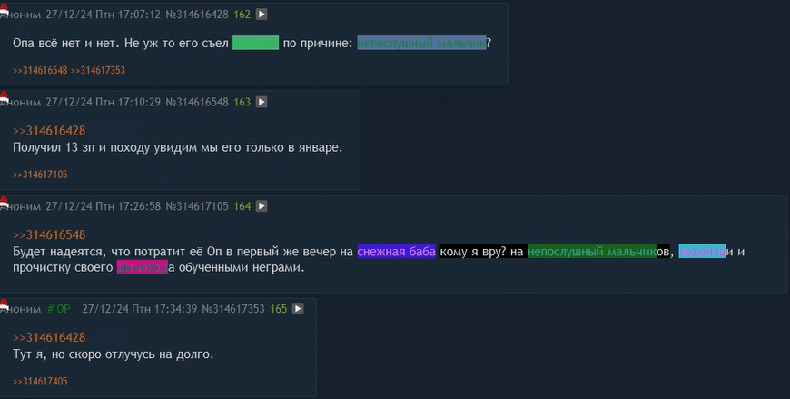 >>1567857 А щас чисто ради эксперимента решил ещё раз пролистать вверх (благо я номер поста не запомнил), и я опять не увидел. Походу Оп действительно не умеет хватать своими постами по крайней мере моё внимание. Пусть прикладывает суп с ч-словами, тогда всё будет классно и захватывающе.
