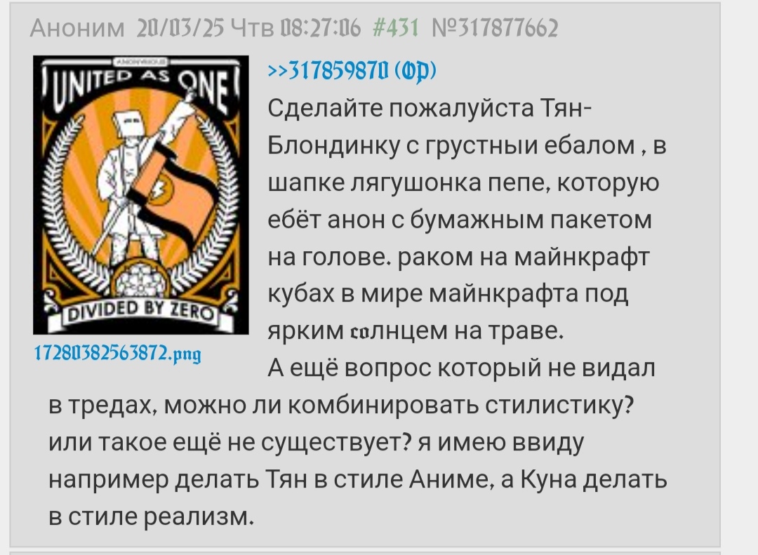 >>1591185 Думую можно устроить день D, но мне в лом. Если кто инициативный пишите, помогу. Правда без понятия чё мы там нарисуем на "фемели френдли" хоста. ОП-хуй