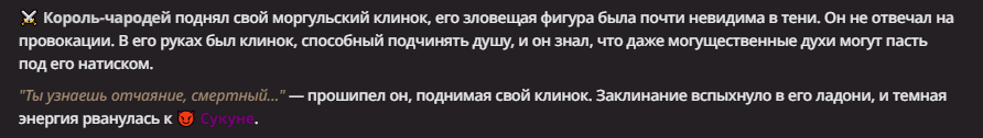 >>1545167 Я Сольгеста и не вбрасываю - он слишком графоманская Мэри Сью, но при этом концовка в том бою оказалась настолько безумная и поехавшая, что вышло даже хорошо. У меня там другие волчары есть, кого можно в бой вбросить. Они и более балансные, и более простые в своей сути.