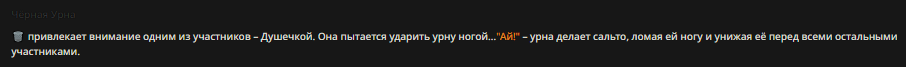 >>1544578 Был и еще один вариант, где все описание состояло из сепулек. Ничего особенного не случилось, весь бой Сепулия сепулировала оппонентов, пока однажды не отлетела от классической подачи "в уязвимое место".