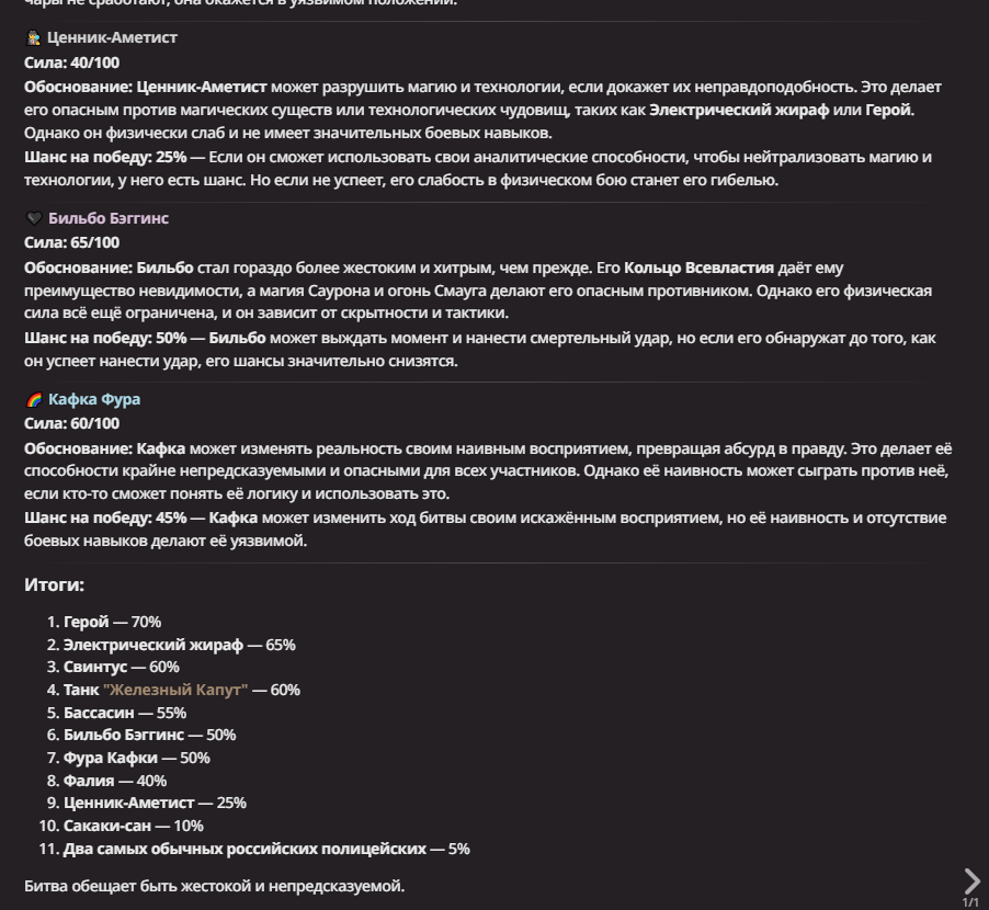>>1545584 Ну так если гпт не прописать нормально непредвзятость, то такие персы всегда будут проигрывать под конец, даже если до этого всех выносили. В угоду сюжету. С сердцем тьмы вчера то же самое было.