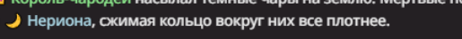 Лунная иллюзия: Нерион может создавать иллюзии, которые полностью обманывают чувства окружающих. Эти иллюзии могут быть настолько реалистичными, что их невозможно отличить от реальности, и они могут воздействовать на все пять чувств. Астральное свечение: Нерион способен генерировать световую энергию, которая действует подобно ауре. Этот свет может исцелять раны и болезни, а также создавать защитные барьеры. В бою он может использовать эту энергию для ослепляющих вспышек или концентрированных световых атак. Гравитационные волны: Нерион умеет манипулировать гравитацией вокруг себя. Он может увеличивать или уменьшать гравитацию в определенных зонах, позволяя ему левитировать предметы, создавать зоны с усиленной гравитацией для удержания врагов на месте, или даже заставлять себя и других летать. Пространственные искажения: Он может создавать временные искажения пространства, позволяющие ему телепортироваться на короткие расстояния, создавать порталы для мгновенного перемещения или даже искажать пространство вокруг себя для избегания атак.