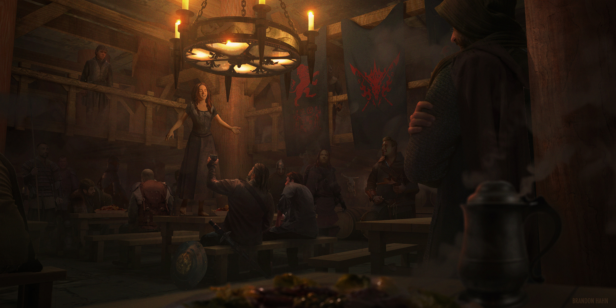 Помогает разносить напитки юная девушка-тифлинг с немного испуганным лицом по имени Равена. Портняжная лавка ее родителей разорилась и семья погрязла в долгах, так что она вынуждена работать здесь. Неловкая и неуклюжая, она явно чувствует себя здесь не в своей тарелке, однако нужда и нависшая над семьей угроза унижения и нищеты заставляют ее двигаться вперед, ведь она отчаянно нуждается в чаевых. Услужливая и немного заискивающая - она идеальный кандидат, если вам нужно что-то принести или мелкая услуга, а обмен на пару монет.