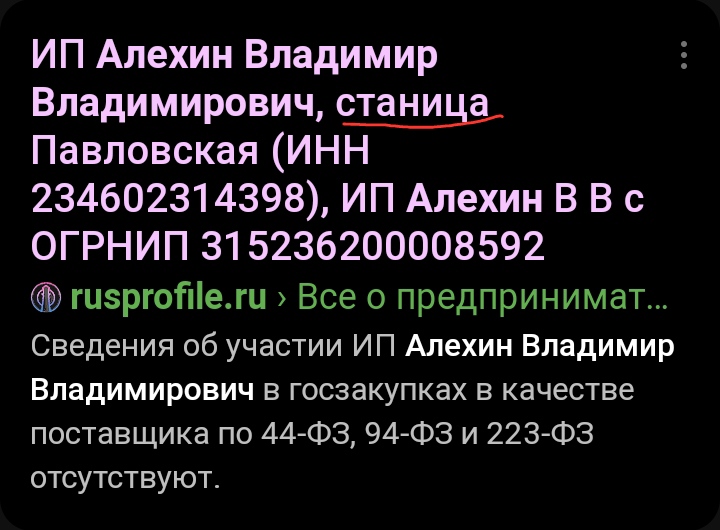 >>1583435 Анальфакия с Кубани. Недавно мы вышли на сидящего в треде ИП Владимира Владимировича Алехина, который тоже с Кубани, с одной станицы. Сопоставив всё, можно сделать вывод, что Анальфакия и есть Вова Алёхин.