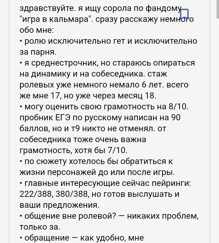 Ощущаю непреодолимое желание играть. Чувствую потребность мотивировать товарищей к запуску таверн, завышенных, разгульных и других игр в разделе /b. Всячески поддерживаю инициативу проведения подобных игр по выходным. Стремлюсь к совершенствованию собственного отыгрыша и вживления в роль, а также понимаю важность помощи новичкам.